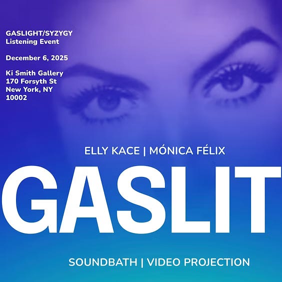 Join us at Ki Smith Gallery on December 6th, 2025 for an extraordinary evening of sound, atmosphere and vision. I have teamed up with visual artist Mónica Félix to present two new works Gaslight/Syzygy hand in hand. A full band soundbath combined with live projections will transform the art gallery into a luminous feel-scape.